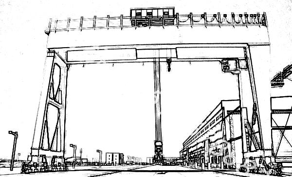 造船門式起重機能特點,造船門式起重機特便是吊重和跨距大、相對高度高。額定值吊重少100t以上,可達2500t;跨距一般超過40m,可做到約230m;承重梁下后蓋板距地的相對高度在40m~100m中間。因為造船門式起重機跨距大,龍門架通常選用一側(cè)剛度腿一側(cè)軟腿的形式,即一側(cè)剛度支腳與承重梁固接,另一側(cè)軟腿根據(jù)軟鉸與承重梁聯(lián)接。