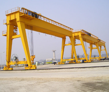 雙主梁門式起重機承載能力強,跨度大、整體穩(wěn)定性好,品種多,但自身質(zhì)量與相同起重量的單主梁門式起重機相比要大些,造價也較高。根據(jù)主梁結(jié)構(gòu)不同,又可分為箱形梁和桁架兩種形式。一般多采用箱形結(jié)構(gòu)。